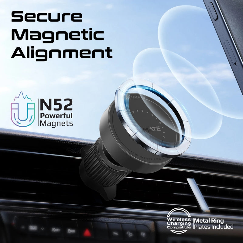 Unleash unprecedented driving convenience with the MagDrive-R, your ultimate 15W MagSafe compatible wireless-charging car mount designed for seamless on-the-go power. Whether mounted on your AC vent, dashboard, or windshield, its retractable USB-C cable can be conveniently adapted to your preferred length, ensuring a neat, clutter-free experience. Featuring quick and secure mounting with N52 rare earth magnets and an innovative anti-shake design, the MagDrive-R promises a steady hold and effortless 360° cradleless rotation for optimal viewing angles. Crafted from durable materials and built with advanced safety features like Foreign Object Detection (FOD), over-charging and over-heating protection, MagDrive-R redefines reliability and performance in wireless in-car charging. Drive with confidence and stay powered up, always.