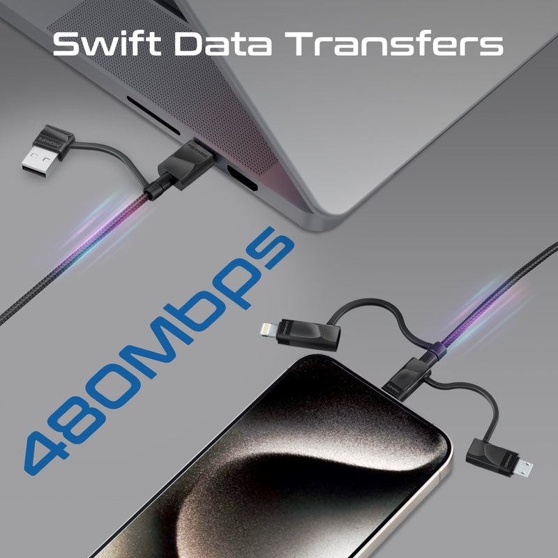 Introducing PentaPower, the ultimate solution for your charging and data transfer needs. With a generous cable length of 1.2 meters, PentaPower offers unmatched convenience, allowing you to comfortably use your devices while charging. Boasting a total output of 20V and 3A, it delivers fast and efficient charging for multiple devices simultaneously, ensuring you stay powered up throughout the day. Not just limited to charging, PentaPower also facilitates seamless data transfer with a high-speed rate of 480Mbps, ensuring your files are transferred swiftly and securely. Crafted from PVC and nylon braided materials, PentaPower guarantees durability and reliability, making it your go-to accessory for all your electronic devices.