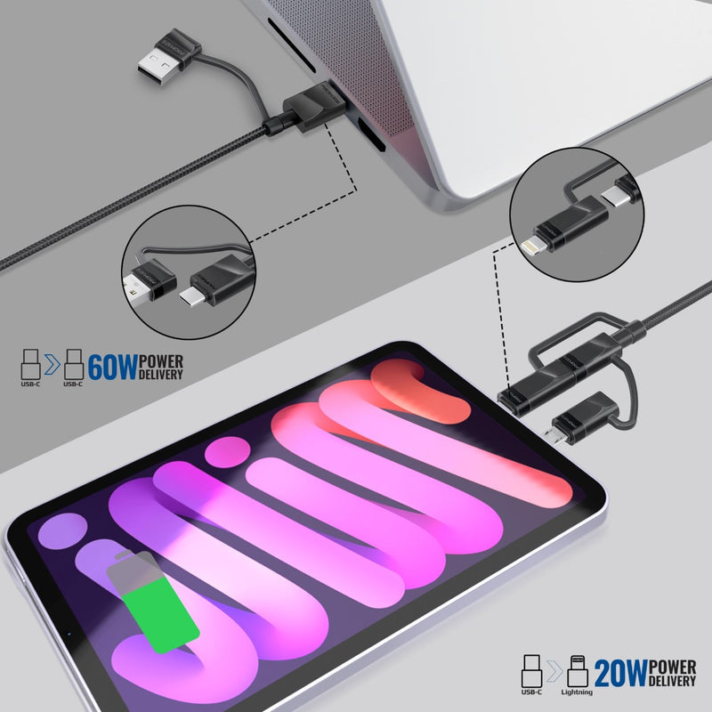 Promate Technologies - 6-in-1 Hybrid Multi-Connector cable for Charging & Data Transfer