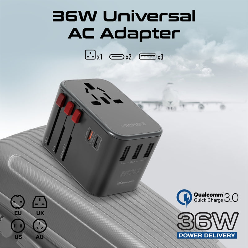 Promate Technologies - 7 in 1 Portable Essential Electronic Accessories Travel Kit