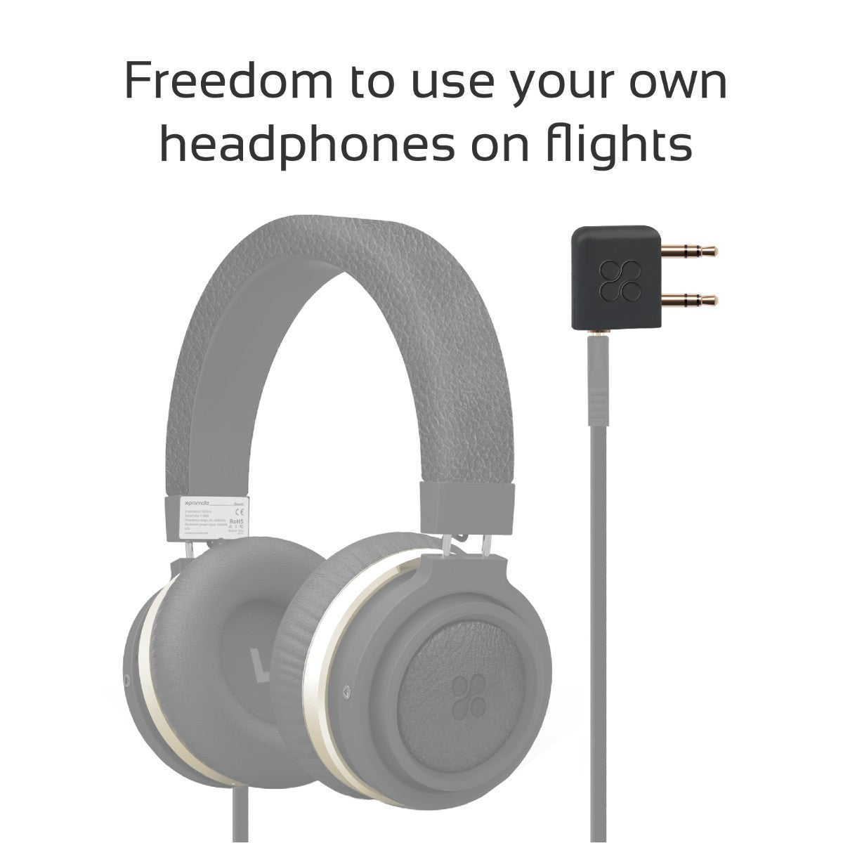 Experience the convenience of using your preferred headphones during flights with the innovative aircraft headphone adapter kit, airGear-1. Just attach airGear-1 to the airplane's standard headphone jack and connect your headphones to the 3.5mm Jack on airGear-1. Enjoy the freedom to use your own headphones on your upcoming flight with airGear-1.