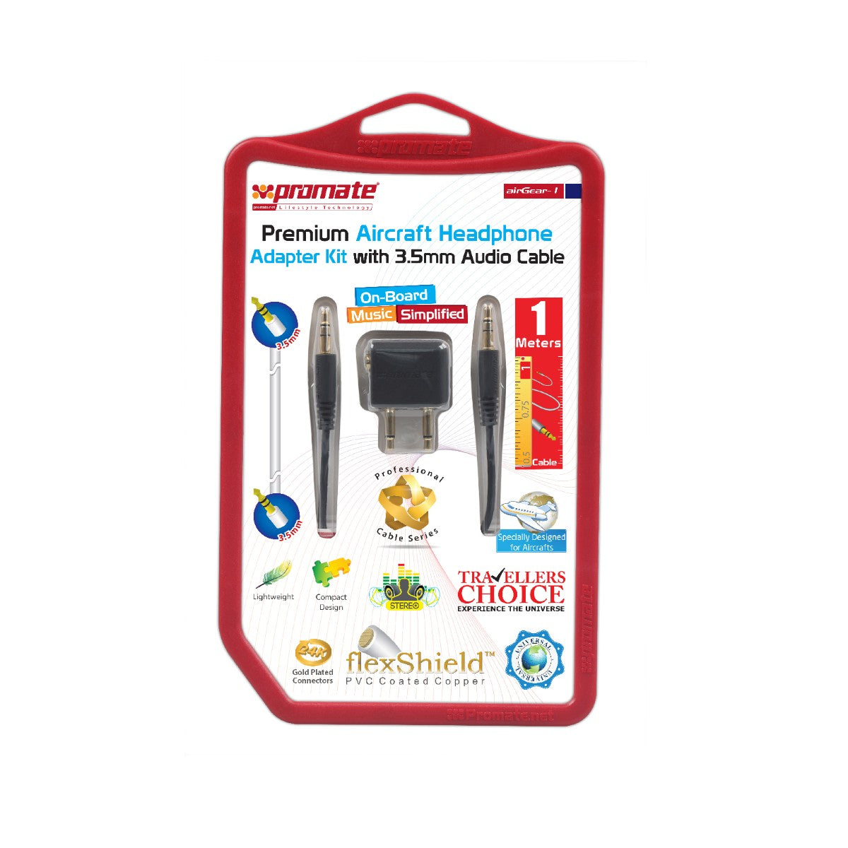 Premium Aircraft Headphone Adapter kit with 1 meter 3.5mm audio cable