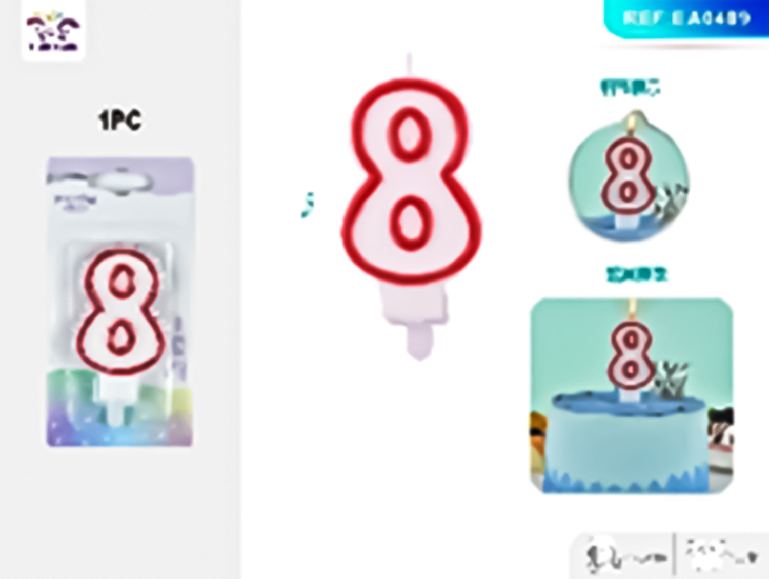 Commemorate your child's eighth birthday with a beautiful 9cm candle adorned with a bold red border, bringing joy to your celebration.