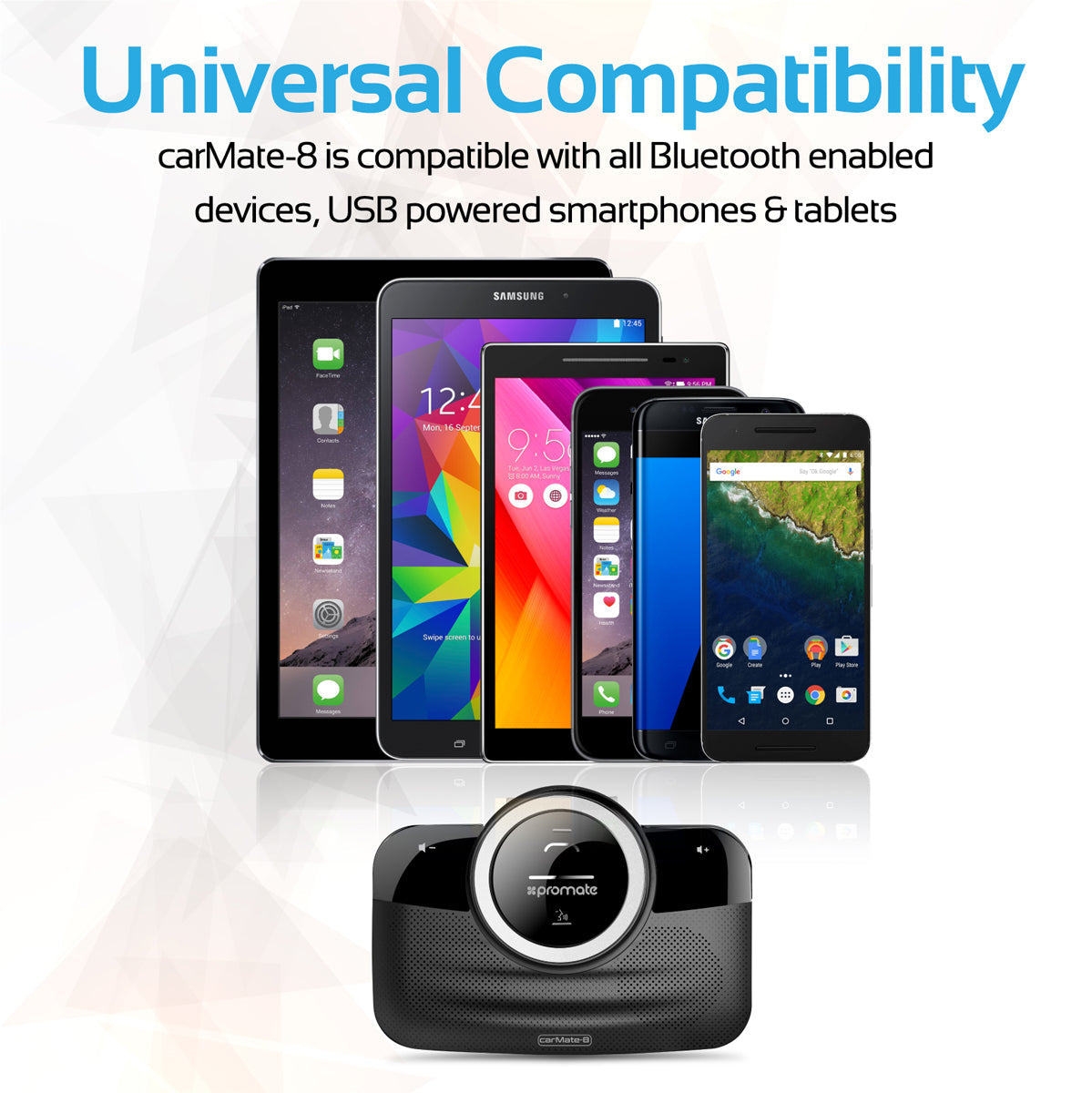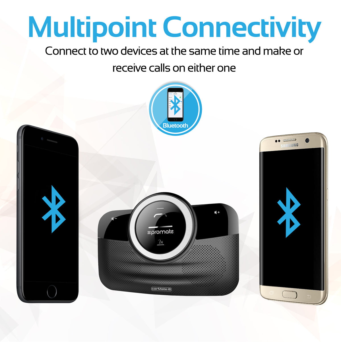 CarMate-8 wireless in-car speakerphone offers a seamless solution for safe driving. With hands-free calling and a motion-activated on/off sensor, it promotes responsible use behind the wheel. The sleek design and dual 3 Watt speaker with HD audio ensure exceptional sound quality. Noise-canceling technology enhances call clarity, while voice prompts provide status updates. Boasting 18 hours of talk time and three weeks on standby, it is perfect for long journeys.