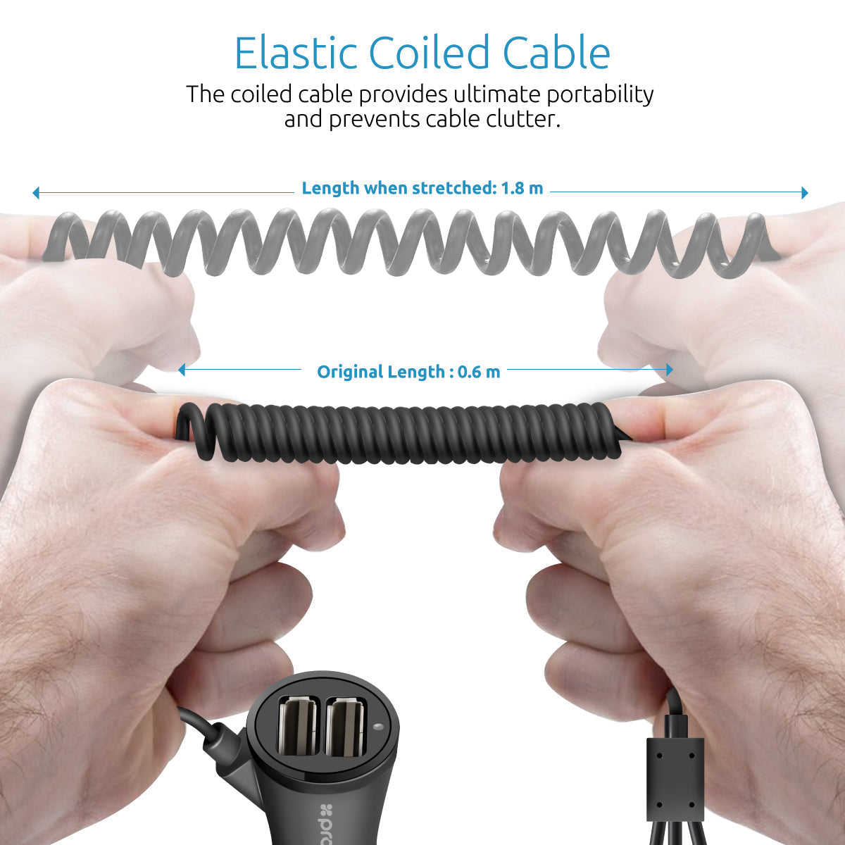 Simplify the charging process for all your USB-powered devices with the Promate Charger-Trio, a 3.4A multi-cable car charger. This innovative charger includes a built-in 3-in-1 charging cable with USB 3.0 Type-C, Micro-USB, and Lightning connectors, ensuring that your mobile devices stay charged and connected wherever you go. The Charger-Trio is an ideal companion for your travels