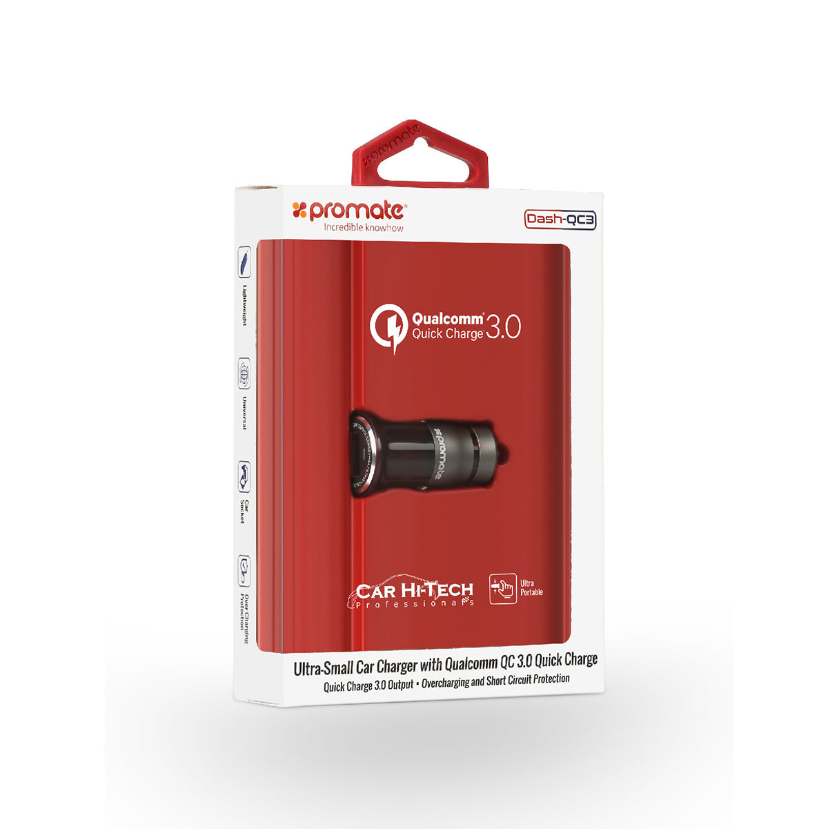 Don't overlook its compact size - the Dash-QC3 is the smallest car charger equipped with Quick Charge 3.0 technology. Save time charging your devices by simply plugging in and experiencing the power of Quick Charge 3.0. Its universal USB output can charge any USB-powered device while ensuring protection against overcharging and short-circuiting. Crafted from fireproof material, this charger remains safe even in harsh conditions.