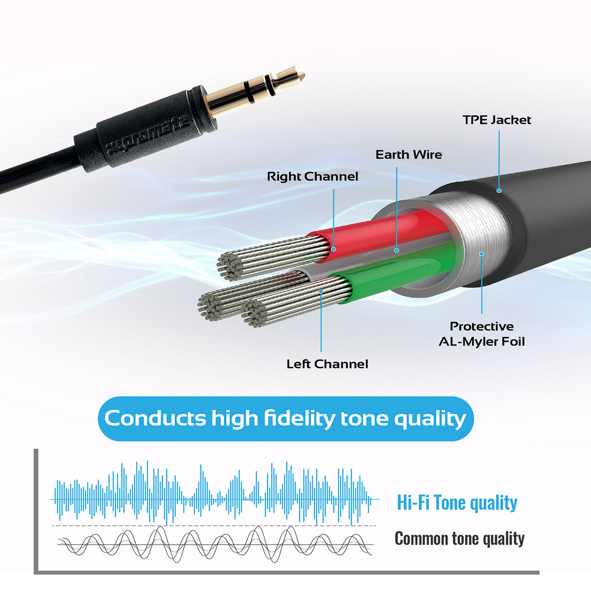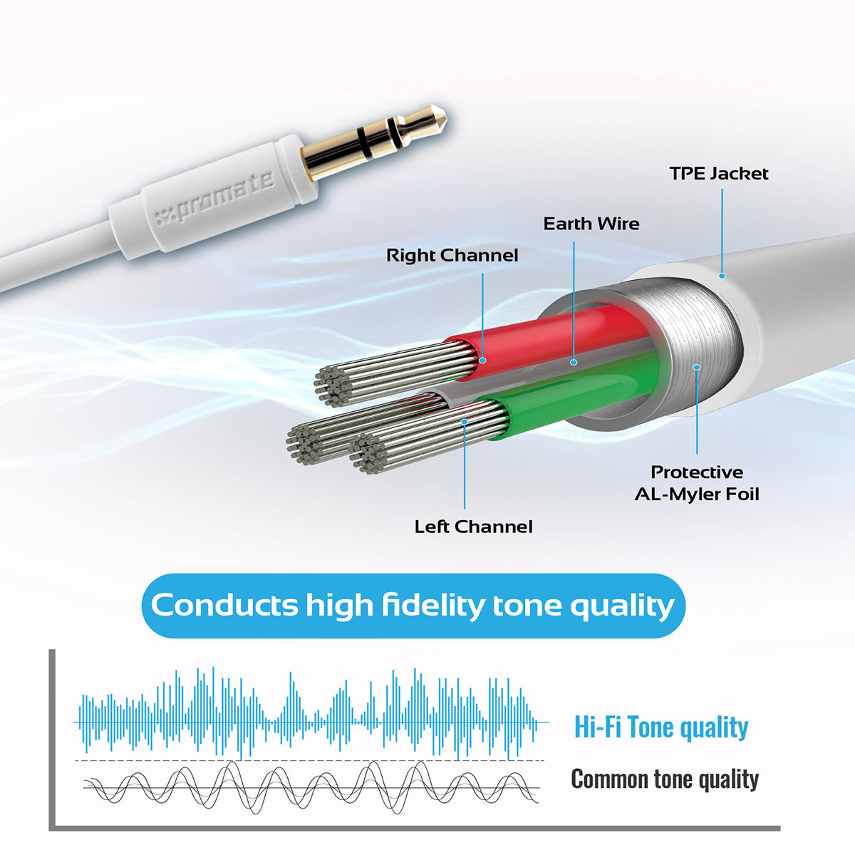 Introducing linkMate.A1, a high-quality 3.5mm cable designed to transmit audio from any 3.5mm sound source to compatible speakers. Crafted from flexShield™ PVC coated copper material, this cable ensures premium audio quality with minimal noise for clear and crisp sound output. It provides direct wired connectivity between media players and 3.5mm compatible speaker systems or your car's AUX connection, offering full music fidelity.