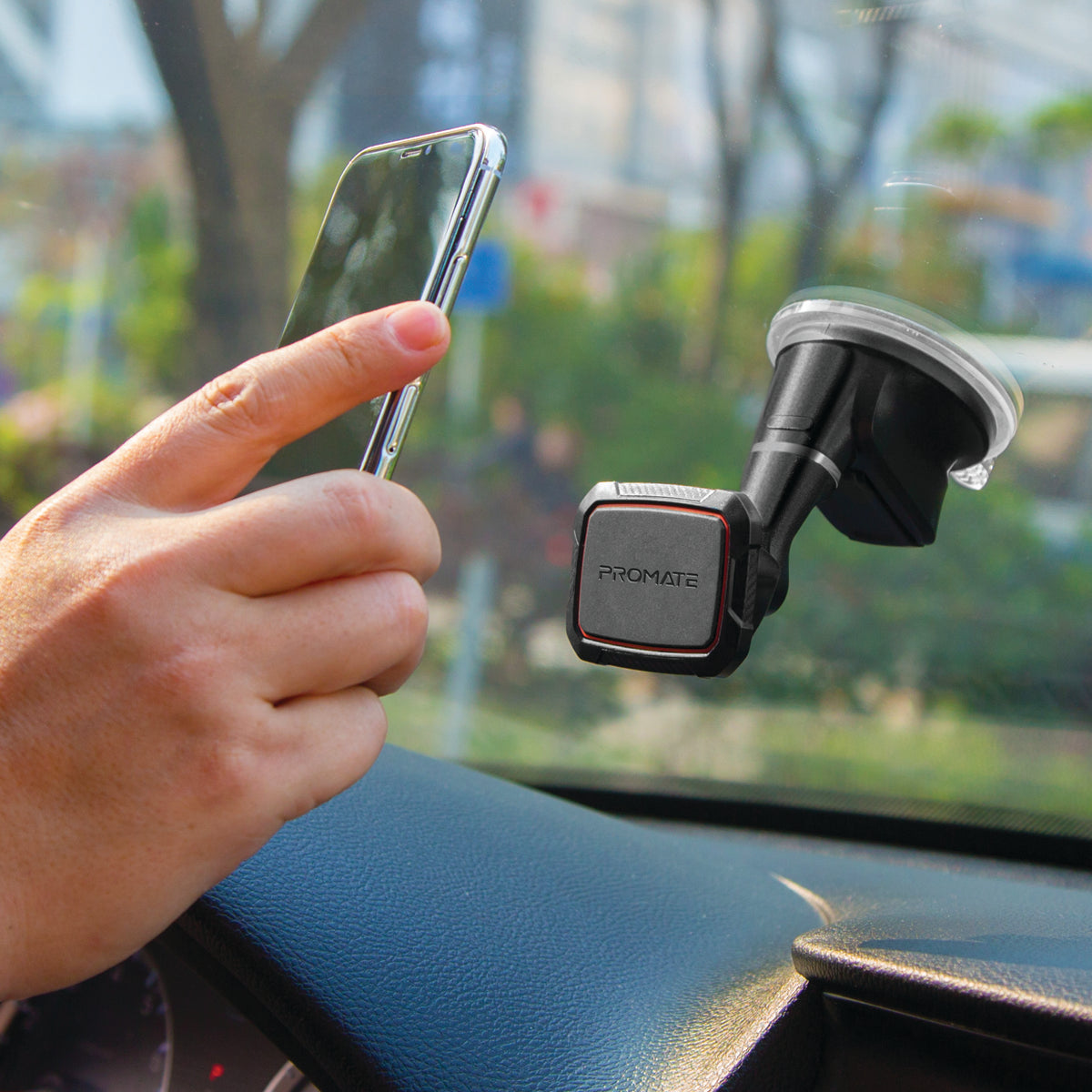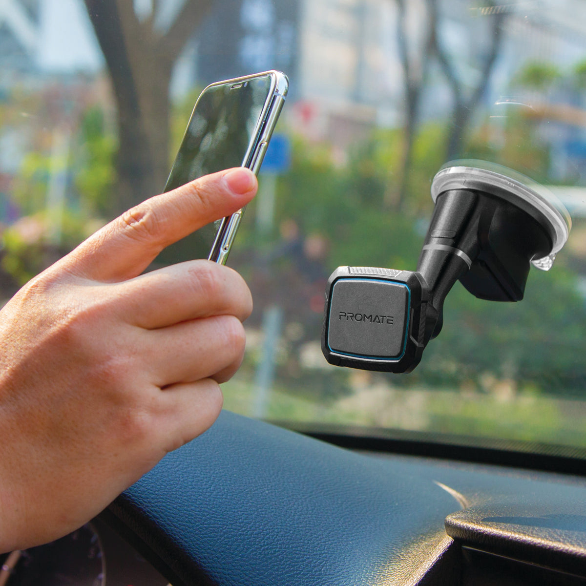 The MagMount-5 is a premium magnetic car mount for cell phones, specially designed to securely hold all smartphones within easy reach. Constructed from durable high-quality plastic, this mount is robust and features a strong suction cup that is easy to install and remove without leaving any residue on your windshield. With a 360-degree swivel head, you can adjust the mount to achieve your desired viewing angle. The MagMount-5 is a reliable companion for your road trips.
