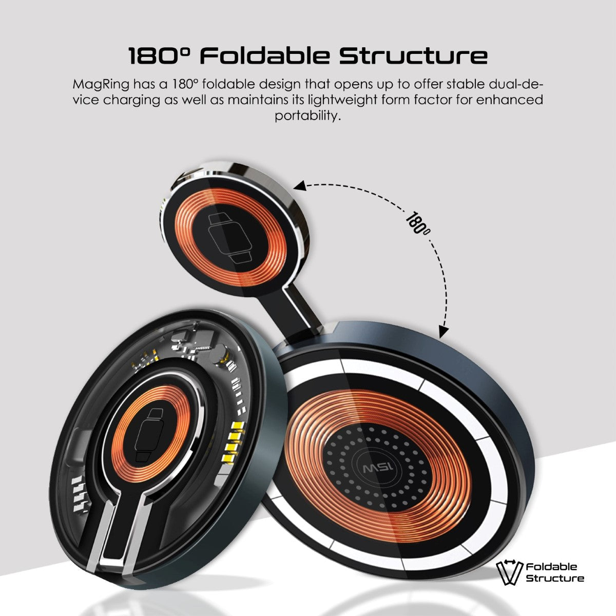 MagRing offers a one-of-a-kind charging experience with its sleek, transparent, and slim ring-like design combined with dual-device fast charging technology. This innovative device features dedicated charging modules for your smartphone and Apple Watch, all housed in a stunning 180° foldable design that also transforms into a multi-position kickstand. The 15W MagSafe-compatible charging module is designed to perfectly align with the latest iPhone series, ensuring super-fast charging speeds. Blending style and performance, MagRing is engineered to go above and beyond expectations.