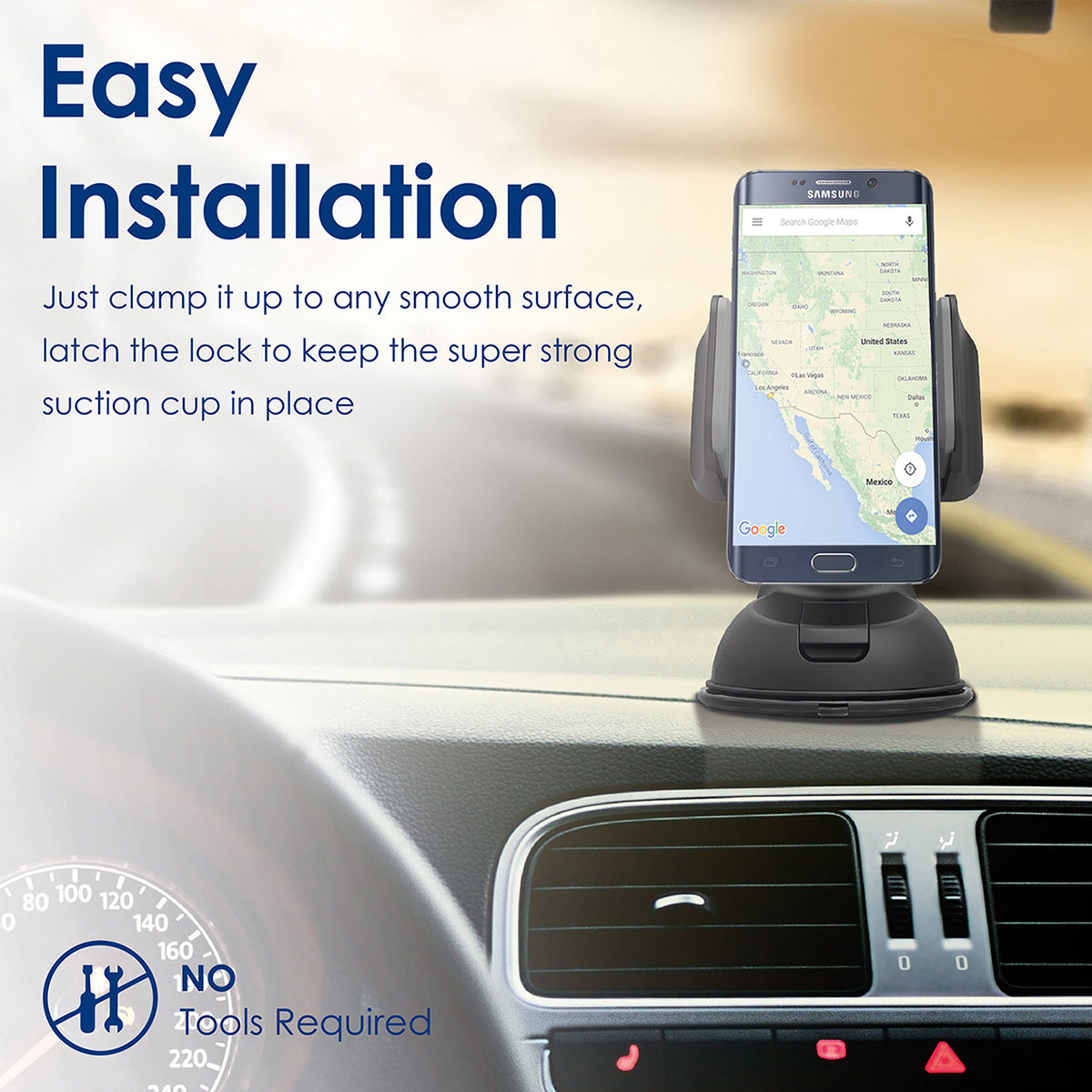 Mount-2 is a universal car phone holder that is durable and easy to use. Simply clamp it onto any smooth surface, lock the suction cup securely in place, and you're ready to go. No tools or adhesives needed! Constructed from robust materials, this hassle-free car phone holder ensures the safety and security of your mobile phone. With a movable pivot for adjusting the viewing angle, Mount-2 is a versatile solution for all users.