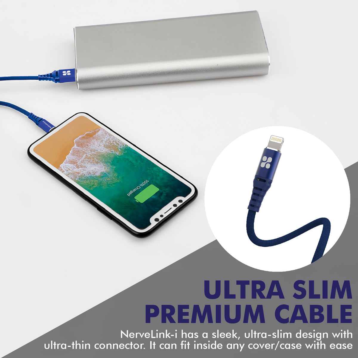 Experience a quicker charge and data transfer with NerveLink-i, enabling you to unplug sooner and enjoy life to the fullest. Enhanced with reinforced connectors to prevent fraying, you can plug and unplug worry-free. Its ultra-compact design ensures compatibility with any case.
