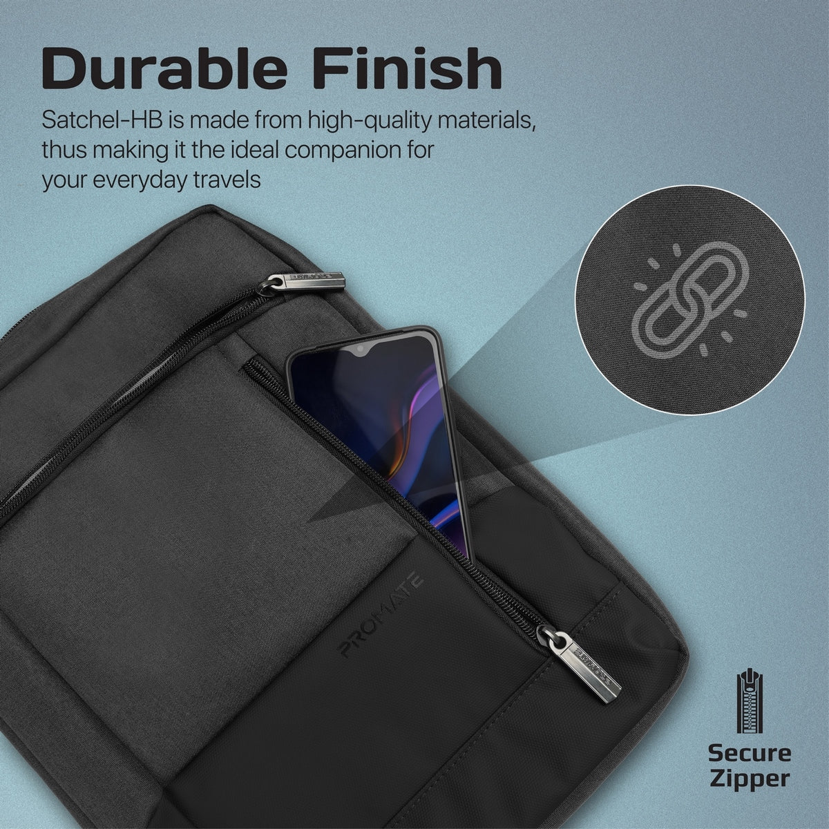 Satchel-HB is a durable and stylish shoulder bag with a tablet compartment suitable for tablets up to 13.3”. Featuring an adjustable shoulder strap, lightweight design, and multiple compartments, Satchel-HB ensures comfort and functionality. The front zipper enhances convenience, making it suitable for school or work settings without compromising style. Rest assured, you'll have ample space for all your essentials.