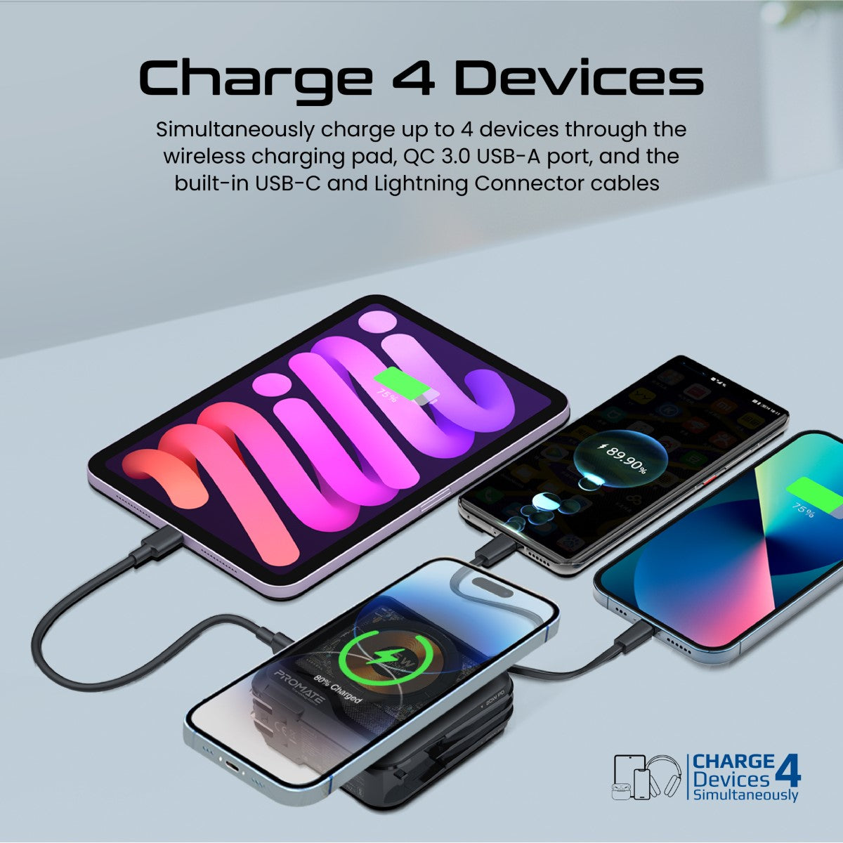 TransMag-20Pro offers a unique transparent design and rapid charging capabilities for an exceptional on-the-go charging experience. It is equipped with a 15W MagSafe-compatible charging module tailored for the latest iPhone models, eliminating the need for extra cables with its integrated USB-C and Lightning Connector cables. Additionally, the power bank can be swiftly charged via AC input and double as a wall charger. With a USB Quick Charge 3.0 port delivering 22.5W, TransMag-20Pro streamlines your charging needs with its versatile 10000mAh capacity.