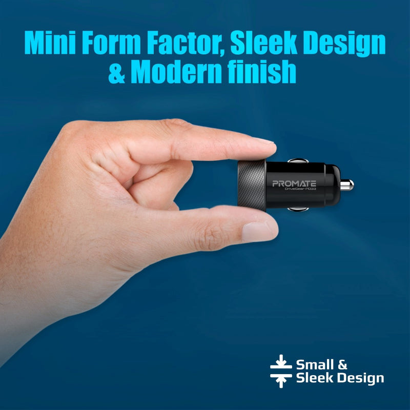 Promate Technologies - Ultra-Fast Dual Port Car Charger with 33W Power Delivery and QC 3.0
