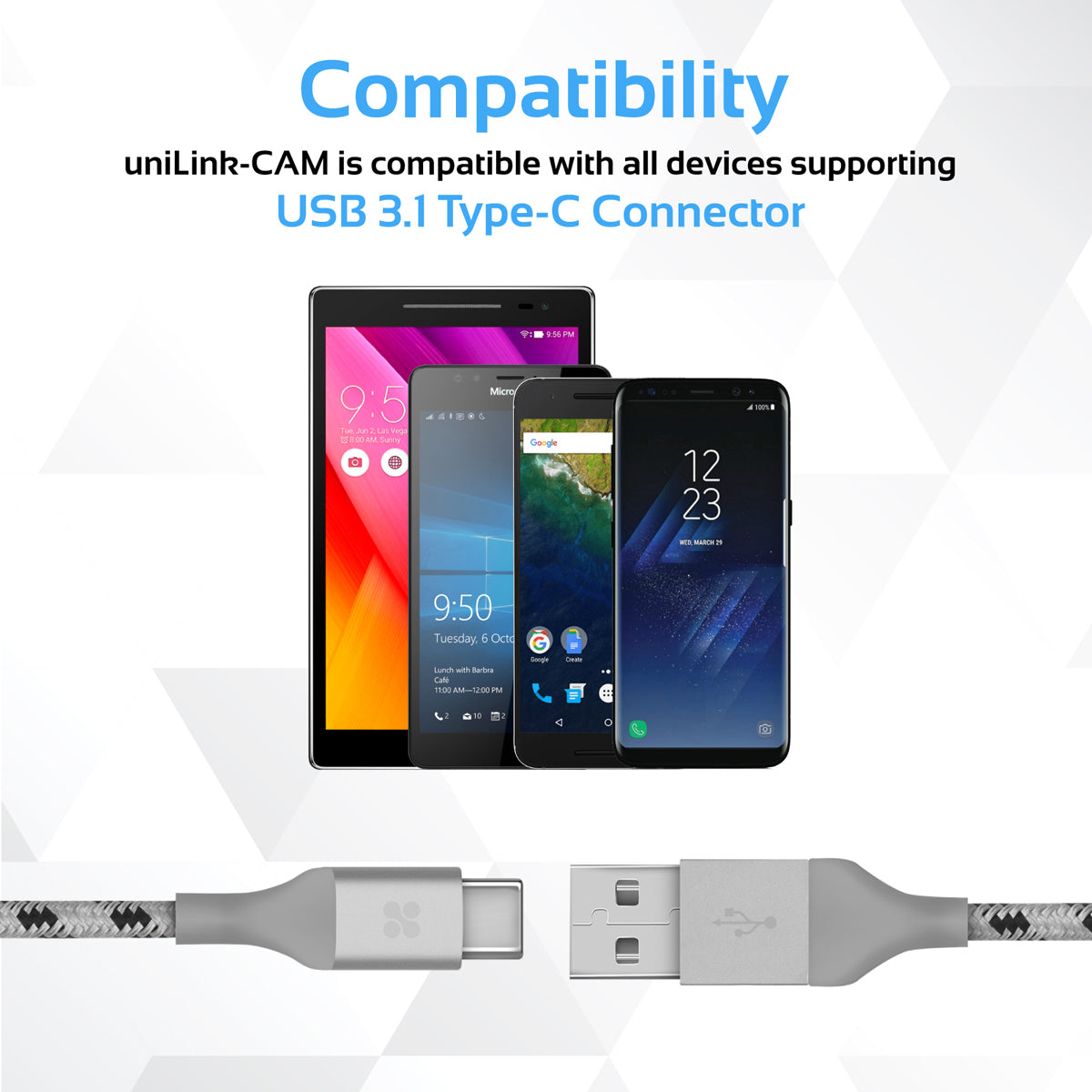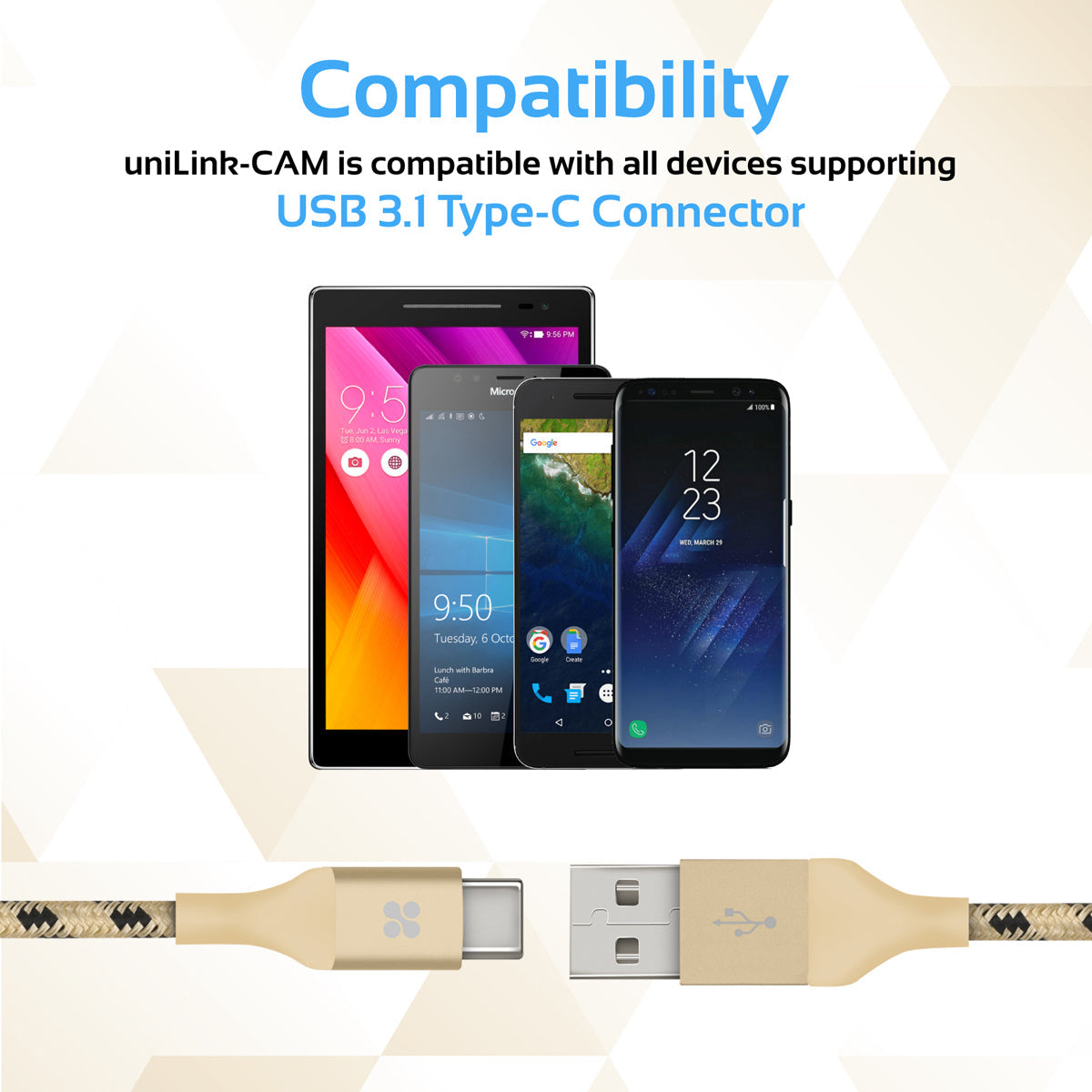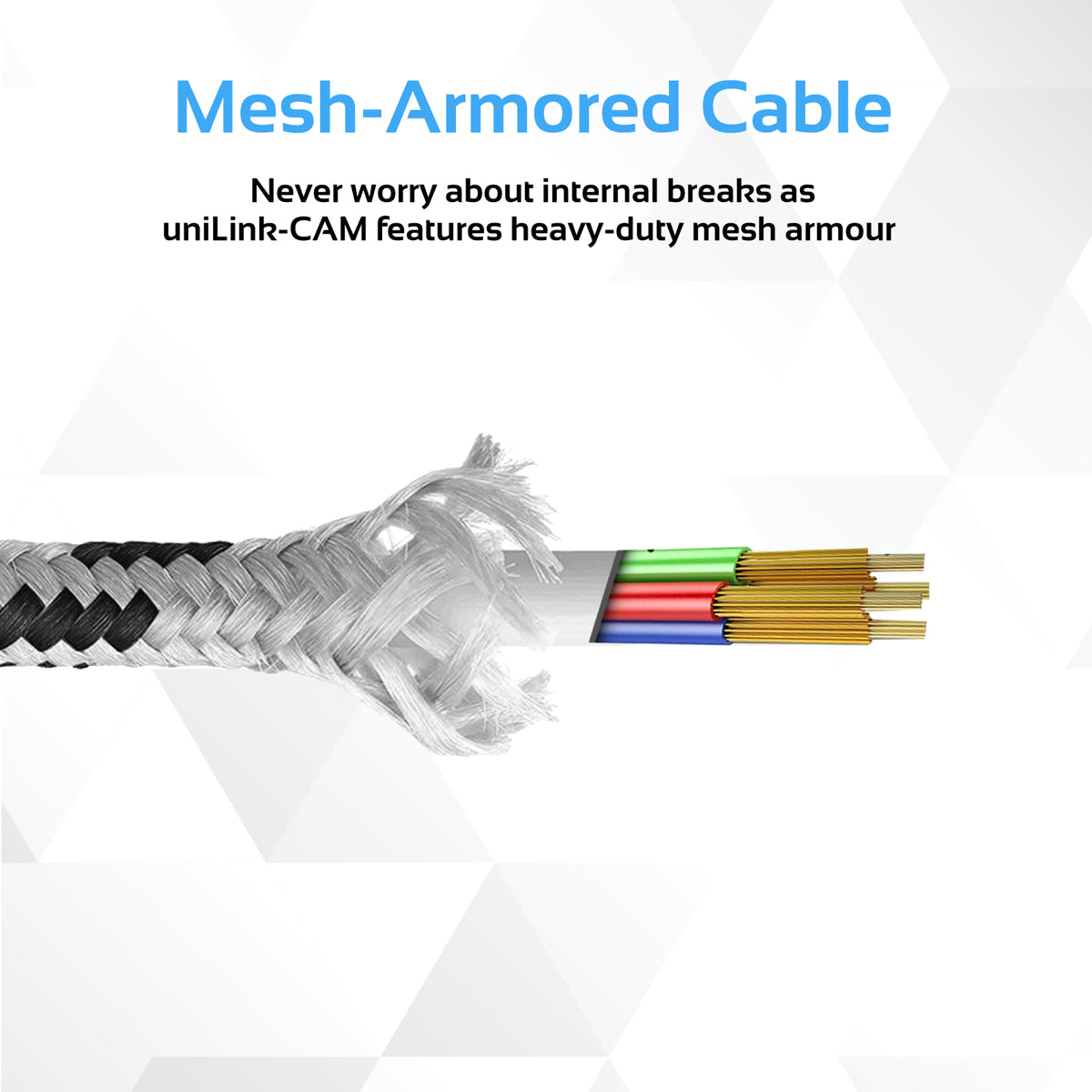 Discover the innovative connectivity solution offered by uniLink-CAM, a durable USB 3.1 Type-C to USB-A cable with mesh armor. With uniLink-CAM, transfer data from a USB-A to a USB-C device at a rapid 5 Gbps speed, and enjoy fast charging with uniLink-CAF. The copper cable is encased in flexShield™ PVC with a fabric mesh braid exterior. Immerse yourself in the latest technology with uniLink-CAM.