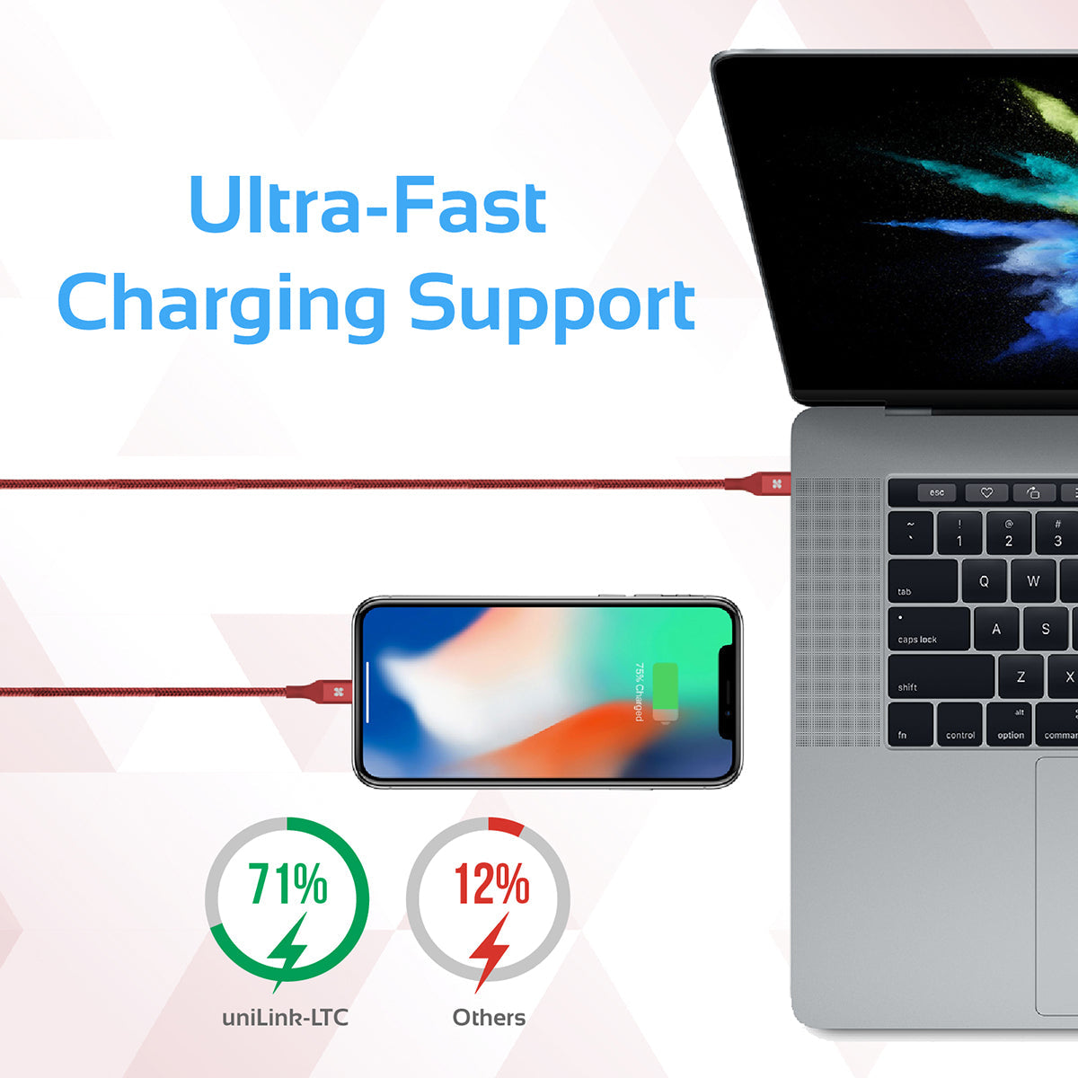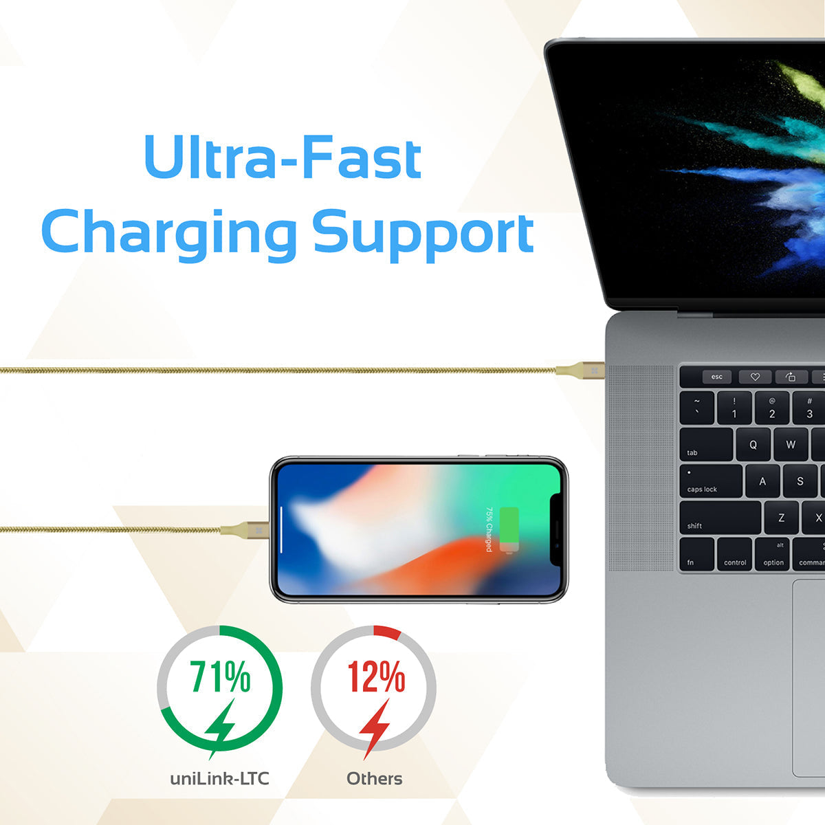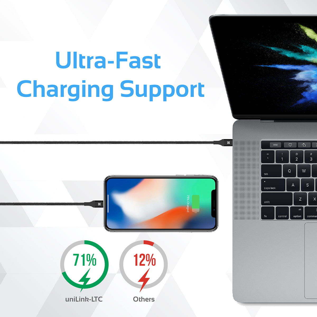 The UniLink-LTC™ allows you to quickly sync photos, music, and data with your Laptop/PC. It also provides up to 2.4Amps of power output for fast device charging. Crafted from high-quality materials, its durability is enhanced by an abrasion-resistant nylon jacket that reduces friction damage. Its smart design ensures it withstands rigorous use and exceeds expectations with exceptional performance.