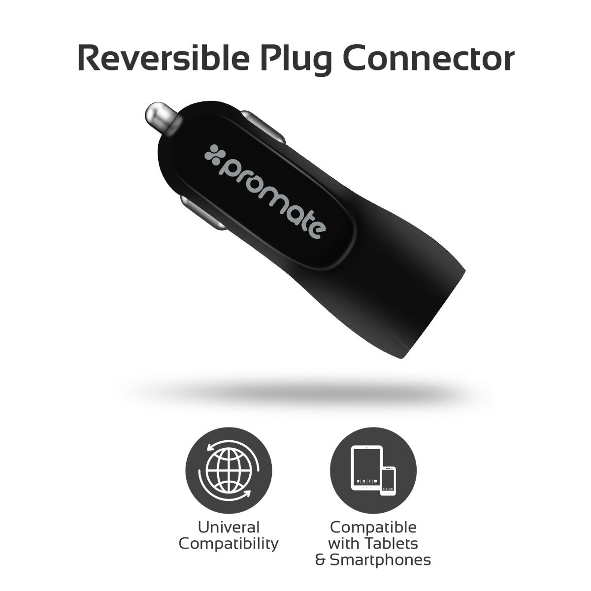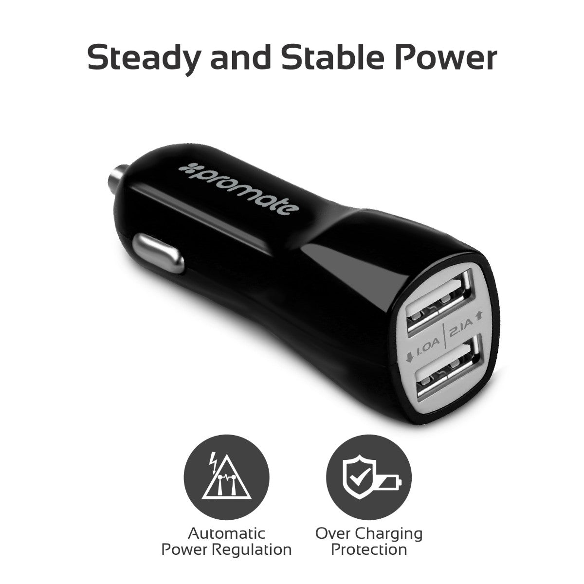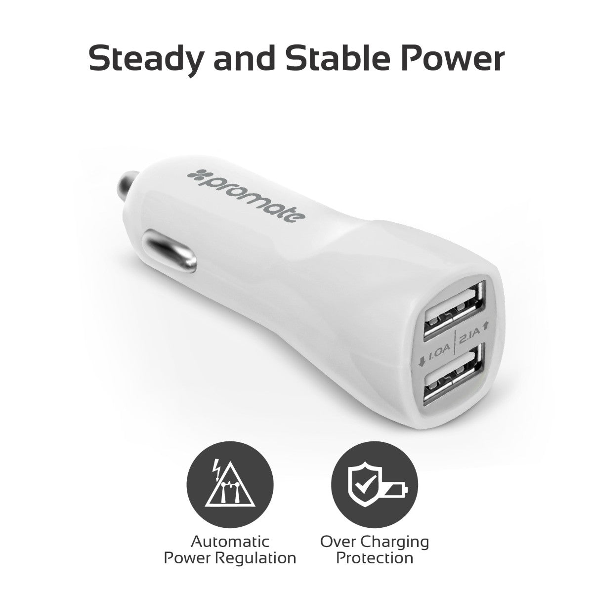 Introducing Vivid, a durable and practical car charger by Promate. This ergonomically-designed 3.1A output car charger features LED lighting and two USB ports, allowing you to charge two devices at once. Its dedicated 2.1A USB port enables quick charging for your tablet. Stay stylish on the go with this modern car charger that combines functionality and design. Experience effortless and fashionable charging with Vivid.